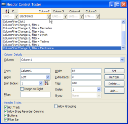 This article provides a fully-featured Header Control directly from COMCTL32.DLL. The latest version uniquely provides support for Outlook-style drag-drop grouping of columns as well as in place column filtering.